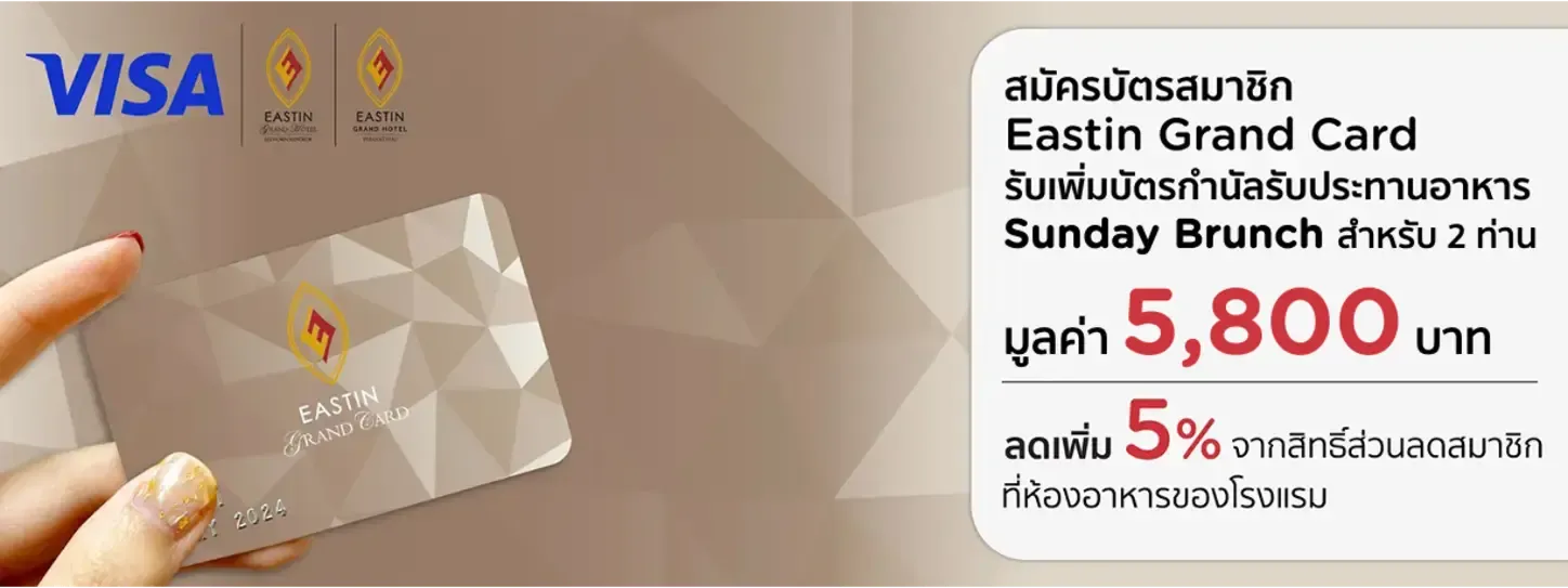 เมื่อชำระค่าอาหารด้วยบัตรเครดิต KTC VISA สามารถใช้ได้ที่ห้องอาหารของโรงแรม Eastin Grand Hotel Sathorn Bangkok และ โรงแรม Eastin Grand Hotel Phayathai