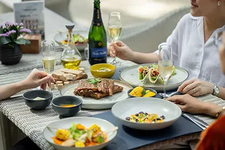 เฉลิมฉลองชีวิตใต้แสงแดดอันดามันด้วยประสบการณ์หรูหราที่คัดสรรอย่างพิถีพิถัน เพลิดเพลินกับอาหารเกรดพรีเมียมและเครื่องดื่มสดชื่นริมชายหาดกมลา ดื่มด่ำไปกับความงามของช่วงเวลาพระอาทิตย์ตกที่สร้างความประทับใจและเป็นเอกลักษณ์ที่ไม่มีที่ไหนเหมือน