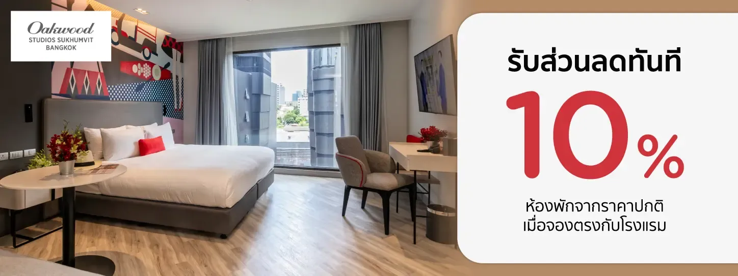 เมื่อจองตรงกับโรงแรมผ่านเว็บไซต์ https://www.discoverasr.com/th/oakwood/thailand/oakwood-studios-sukhumvit-bangkok