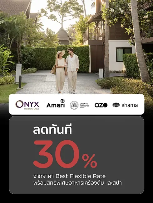 - ส่วนลดสูงสุด 30% สำหรับอาหาร เครื่องดื่ม สปาและทรีตเทนต์ ณ โรงแรมในเครือ ONYX Hospitality Group ที่ร่วมรายการ