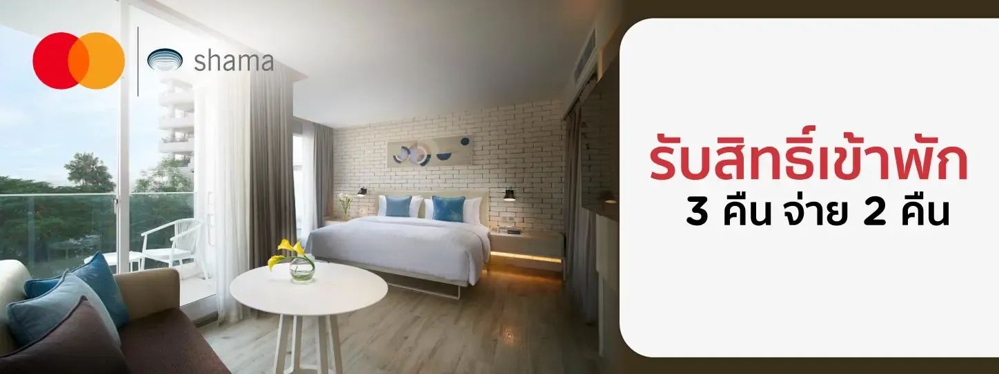 - สิทธิพิเศษนี้สามารถจองได้ผ่านลิงก์ด้านล่าง และต้องทำการจองและเข้าพักให้เสร็จสิ้นภายในวันที่ 31 ธันวาคม 2568 www.shama.com/mastercard