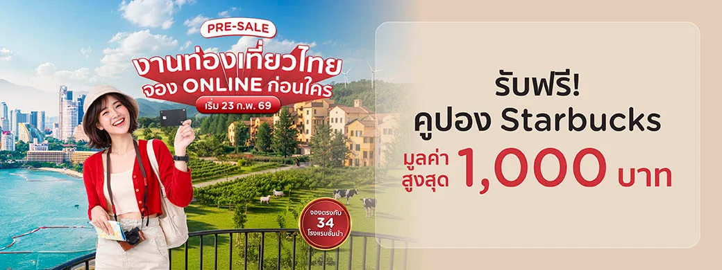 รับสิทธิ์คุ้ม 2 ต่อ!! เมื่อมียอดใช้จ่ายออนไลน์ ณ ร้านค้าที่ร่วมรายการ ระหว่างวันที่ 23 ก.พ. 69 - 10 มี.ค. 69 *ระยะเวลาแต่ละโรงแรมไม่เท่ากัน