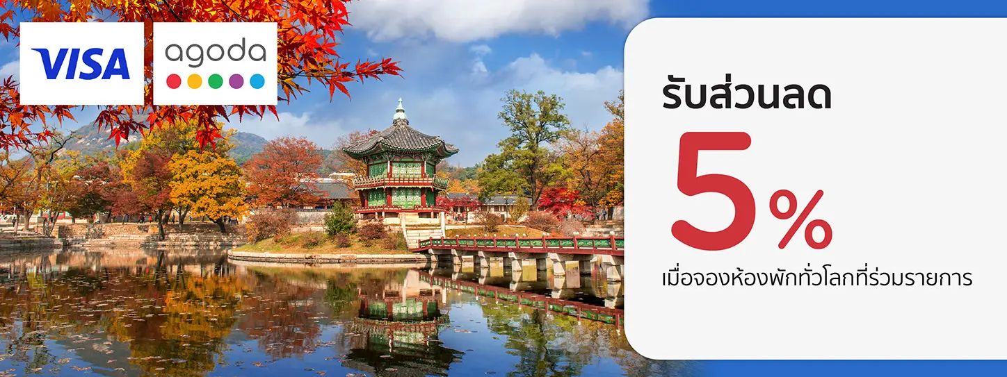 - สิทธิพิเศษสำหรับบัตรเครดิต KTC VISA ทุกประเภท เมื่อจองผ่าน www.agoda.com/visath ส่วนลดสำหรับการจองห้องพักและชำระเงินระหว่าง ระยะเวลาโปรโมชั่น : 1 ก.ย. 68 – 31 ธ.ค. 68, ระยะเวลาเดินทาง : 1 ก.ย. 68 – 30 มิ.ย. 69