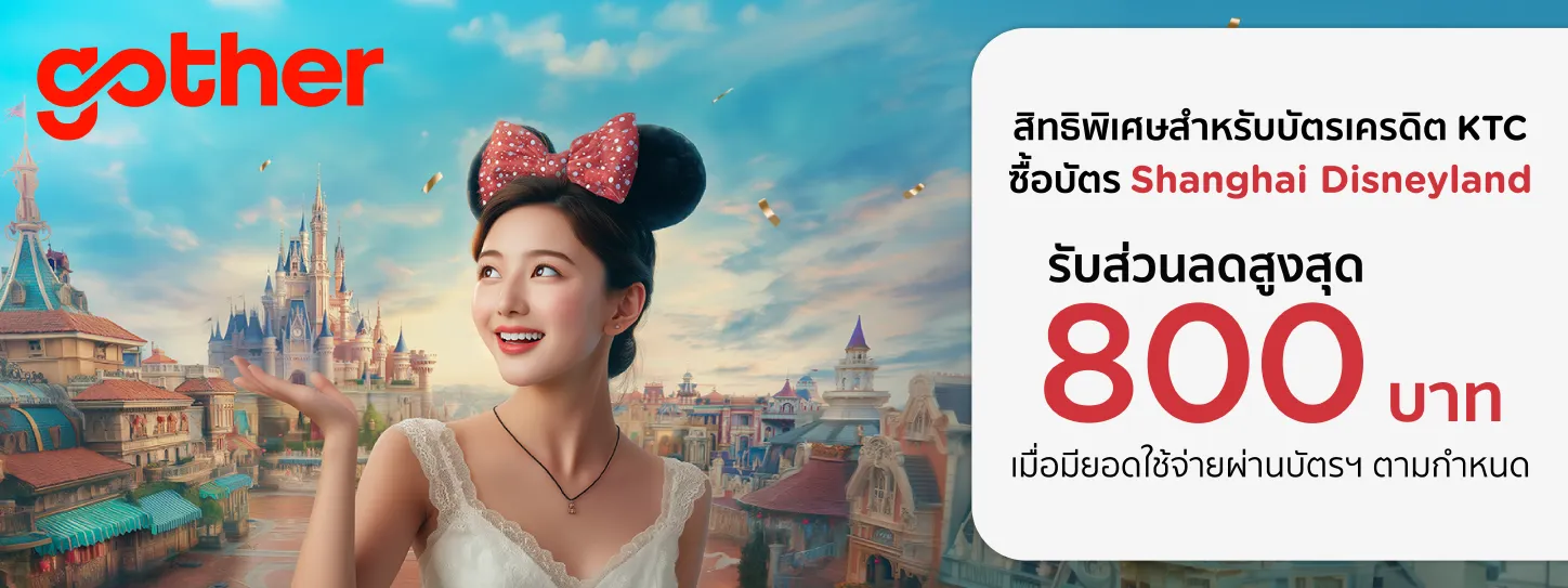 - ใช้โค้ดส่วนลด KTFUN300 รับส่วนลด 300 บาท เมื่อซื้อบัตร Shanghai Disneyland โดยมียอดการจองขั้นต่ำ 2,500 บาทขึ้นไป ต่อ 1 รายการจอง (1 สิทธิ์ ต่อ 1 โค้ด ต่อ 1 ผู้ใช้งาน ไม่จำกัดสิทธิ์ตลอดระยะเวลาส่งเสริมการขาย ตั้งแต่วันที่ 22 สิงหาคม 2568 เวลา 00:00 น. ถึง 30 กันยายน 2568 เวลา 23:59 น. ตามเวลาประเทศไทย)