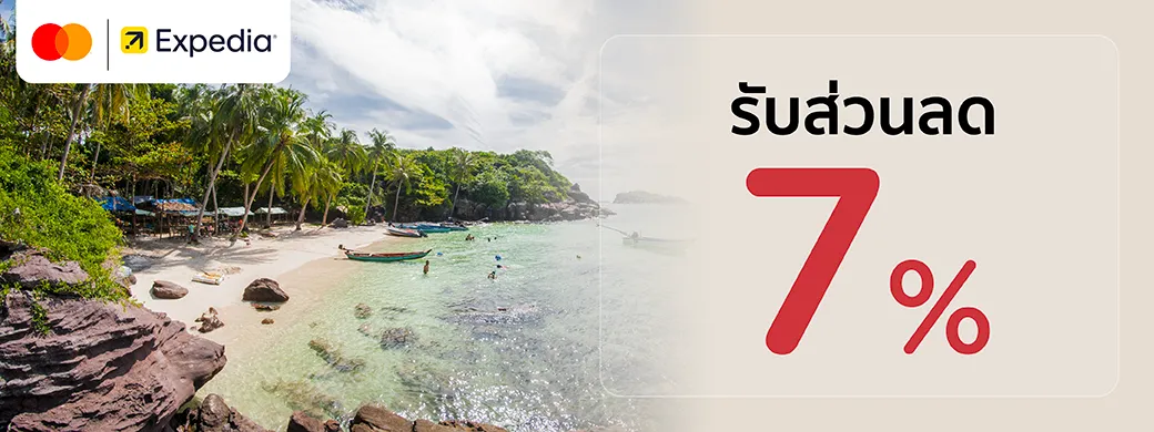 เมื่อจองโรงแรมที่ร่วมรายการผ่านทาง www.expedia.co.th/mastercard พร้อมระบุรหัสโปรโมชั่น "MASTERTH7" และชำระเงินด้วยบัตรเครดิต KTC MASTERCARD ทุกประเภทและบัตรกดเงินสด KTC PROUD MASTERCARD ที่ Expedia