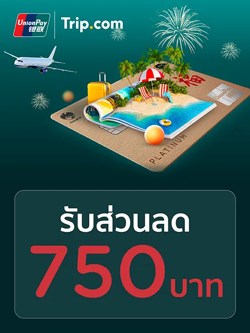 - ผู้ถือบัตร UnionPay ที่ออกในประเทศไทย จะได้รับส่วนลดเพิ่ม 750 บาท สำหรับแต่ละการจองเที่ยวบินและโรงแรม ตามเงื่อนไขที่กำหนด