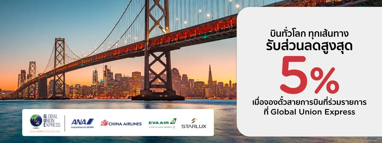 บินทั่วโลก ทุกเส้นทาง รับส่วนลดสูงสุด 5% (จากราคาปกติ)