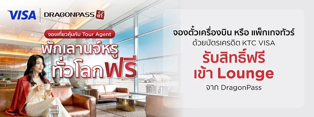 - รายการส่งเสริมการขาย (“รายการ”) นี้ บริษัท บัตรกรุงไทย จำกัด (มหาชน) หรือ เคทีซี จัดทำขึ้นเพื่อมอบสิทธิประโยชน์ให้แก่สมาชิกบัตรเครดิต KTC VISA ทุกประเภท (“สมาชิก”) ที่มียอดชำระค่าแพ็กเกจทัวร์ หรือตั๋วเครื่องบินผ่านทราเวลเอเจ้นท์ที่ร่วมรายการ ภายใต้หมวดทัวร์เอเจนท์ (Tour Agent) MCC 4722 ศึกษารายละเอียดเพิ่มเติมได้ที่ เว็บไซต์ www.visa.co.th) ผ่านบัตรฯ ตั้งแต่ 30,000 บาทขึ้นไป ต่อ เซลส์สลิป เฉพาะรายการชำระเต็มจำนวนเท่านั้น ในช่วงระหว่างวันที่ 1 มี.ค. 69 - 30 มิ.ย. 69 (“ระยะเวลารายการ”) ตามเงื่อนไขที่กำหนดเท่านั้น