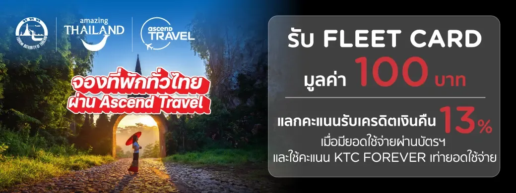 หมายเหตุ หลังจากจองและเข้าพัก แอดไลน์ @AscendTravel รับ Fleet Card สำหรับใช้เป็นส่วนลดครั้งถัดไป