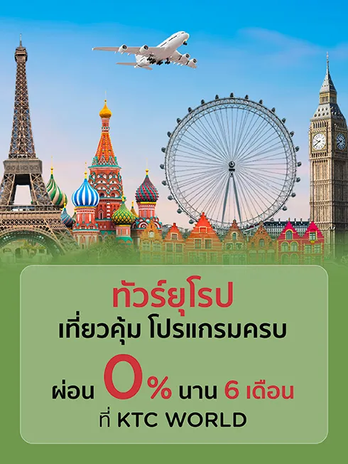 ชวนคุณบินรอบโลก ลัดฟ้าสู่ดินแดนยุโรป พาคุณไปเปิดประสบการณ์ใหม่ มีให้เลือกหลากหลายเส้นทาง หลากหลายโปรแกรม กับ บริษัทชั้นนำ ผ่านบัตรเครดิต KTC ที่ KTC WORLD