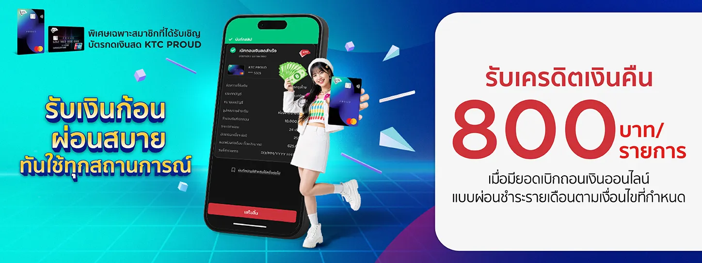 • อัตราดอกเบี้ยแบบลดต้นลดดอก 24-25% ต่อปี ศึกษารายละเอียดอัตราดอกเบี้ยเพิ่มเติมได้ที่ https://www.ktc.co.th/loan/ktc-proud/ci