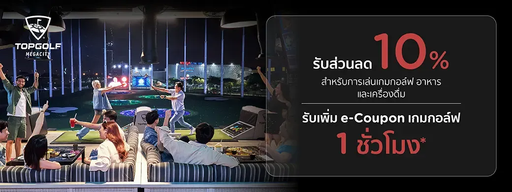 เมื่อมียอดใช้จ่ายผ่านบัตรฯ ที่ Topgolf Megacity และใช้คะแนน KTC FOREVER เท่ายอดใช้จ่าย / เซลส์สลิป