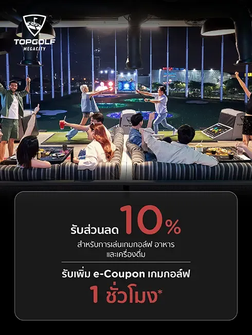 - ส่วนลดดังกล่าวใช้ได้เฉพาะบริการที่เบย์ปกติสำหรับค่าเกม, อาหารและเครื่องดื่ม ที่ร้านอาหารทั้ง 5 แห่งที่ ท็อปกอล์ฟ เมกาซิตี้ ได้แก่ Sports Bar, The Patio, The Busted, The Devil's Lounge และ Pink Giraffe Rooftop Bar เท่านั้น