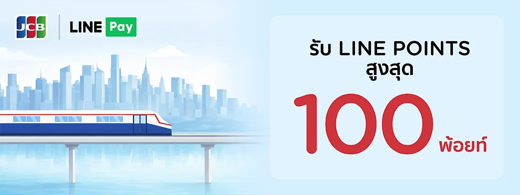 - เมื่อมีการใช้จ่ายผ่านบัตรเครดิต JCB ผ่าน LINE Pay ประเทศไทย กับรถไฟฟ้า BTS ภายในระยะเวลาส่งเสริมการขาย (ไม่มีขั้นต่ำในการใช้) มีสิทธิ์ได้รับ LINE POINTS ดังนี้