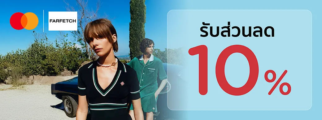 เมื่อมียอดใช้จ่ายขั้นต่ำ 300 ดอลลาร์สหรัฐ ผ่านทางhttps://www.farfetch.com/th/พร้อมรหัสโปรโมชั่น "MCML10" และชำระเงินด้วยบัตรเครดิต KTC MASTERCARD ทุกประเภทและบัตรกดเงินสด KTC PROUD MASTERCARD ที่ FARFETCH