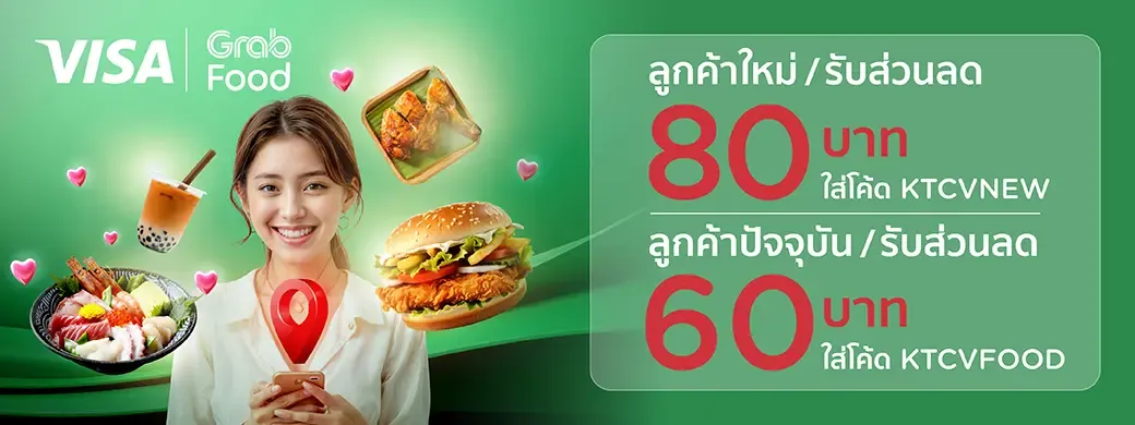 • ผู้ใช้บริการต้องใส่รหัสส่วนลด และเลือกจ่ายผ่าน GrabPay ด้วยบัตรเครดิต KTC VISA ก่อนสั่งซื้อเท่านั้น