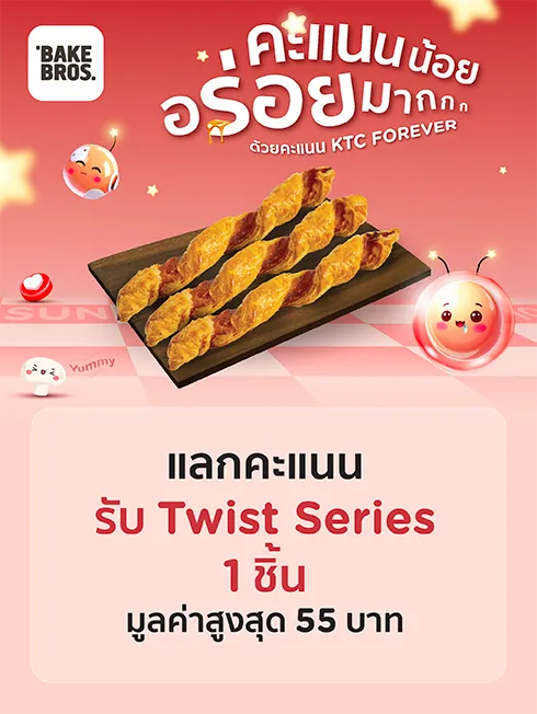 เมนูที่ร่วมรายการ: Cinemon Twist, Bacon Twist, Chessy Bacon Twist, Garlic Bacon Twist, Parmesan cheesy bacon twist