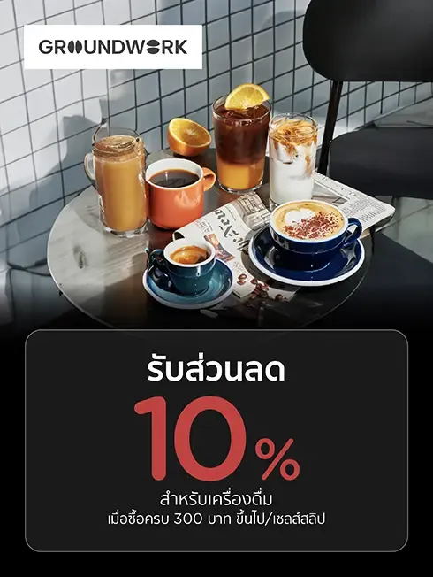 รับส่วนลด 10% สำหรับเครื่องดื่ม เมื่อซื้อครบ 300 บาท ขึ้นไป /เซลส์สลิป