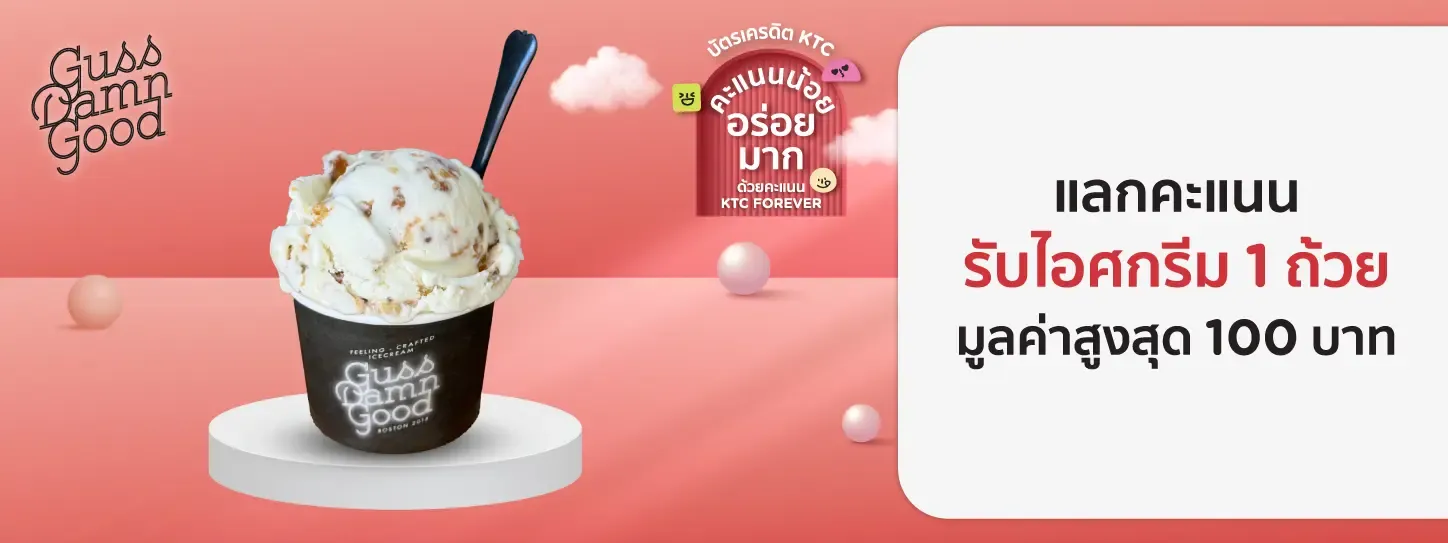 - สมาชิกสามารถใช้ 699 คะแนนแลกรับ ไอศกรีม 1 สกู๊ป มูลค่าสูงสุด 100 บาท (เฉพาะรสชาติ standard เท่านั้น) ผ่านแอป KTC Mobile ภายในระยะเวลารายการและเงื่อนไขที่กำหนด