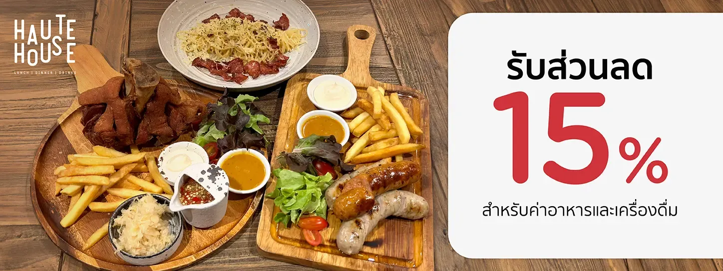 รับส่วนลด 15% สำหรับค่าอาหารและเครื่องดื่ม