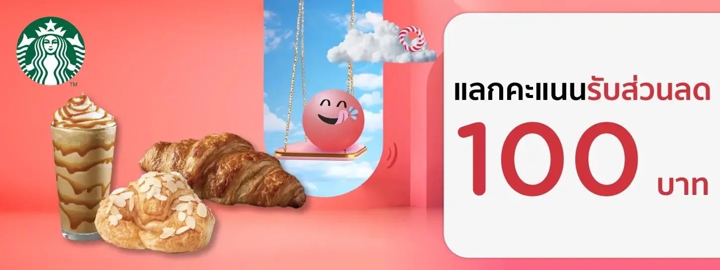 - สมาชิกสามารถใช้คะแนนแลกรับ Starbucks e-Coupon มูลค่า 100 บาท ผ่านแอป KTC Mobile ภายในระยะเวลารายการและเงื่อนไขที่กำหนด