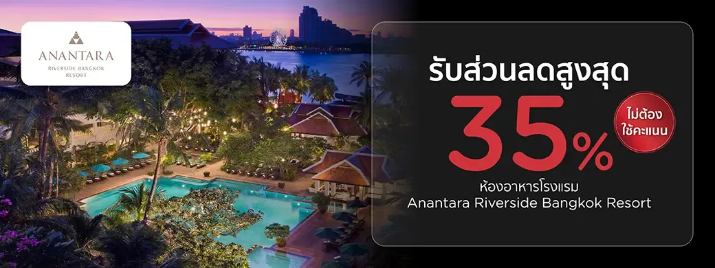 รับส่วนลดสูงสุด 35% ค่าอาหารเมนู a la carte, bakery และ เครื่องดื่มไม่มีแอลกอฮอล์