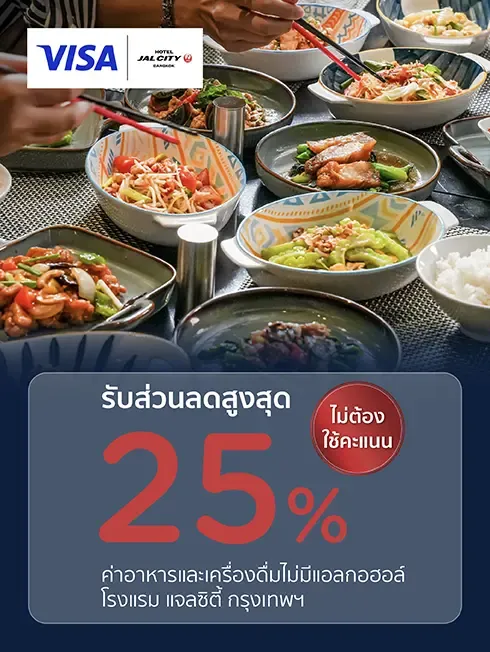 - รับส่วนลด 25% สำหรับค่าอาหาร A La carte และเครื่องดื่มไม่มีแอลกอฮอล์