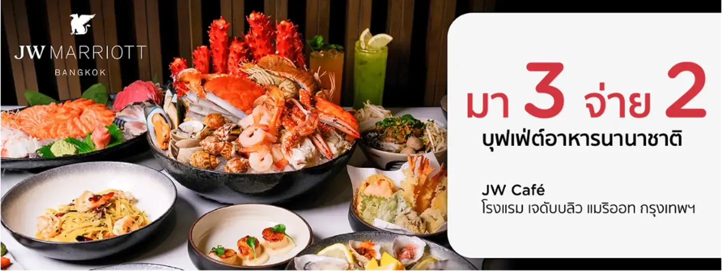 มา 3 จ่าย 2 สำหรับบุฟเฟ่ต์นานาชาติ มื้อกลางวันและมื้อค่ำ, Grand Dinner Buffet และ Sunday Brunch