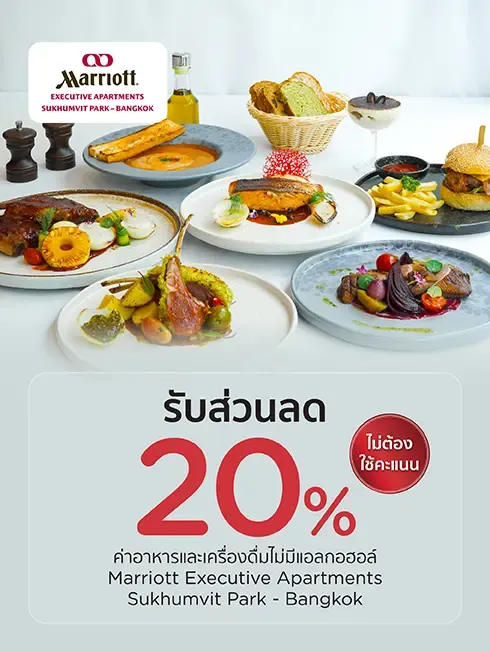 รับส่วนลด 20% ค่าอาหารเมนู A La Carte และเครื่องดื่มไม่มีแอลกอฮอล์