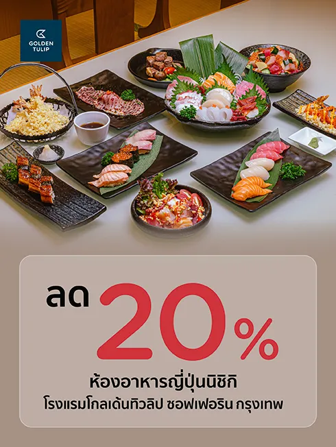 LineOA: @goldentulipbangkokFacebook page: GoldenTulipBangkokโทร:02 641 4777 โรงแรมโกลเด้นทิวลิป ซอฟเฟอริน กรุงเทพ
