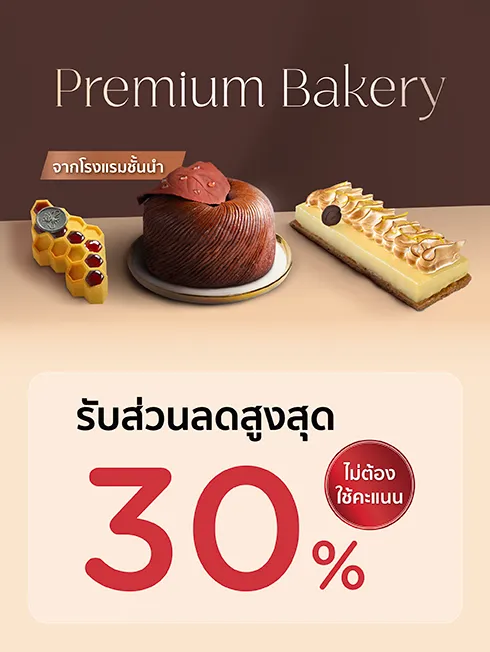 รับส่วนลด 30% ค่าเบเกอรี อาหาร และเครื่องดื่มไม่มีแอลกอฮอล์