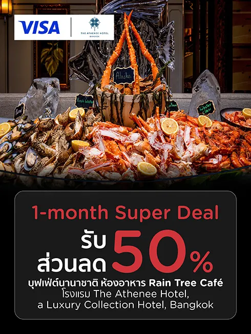 รับส่วนลด 20% ในวันหยุดและเทศกาลตามที่โรงแรมกำหนด สำหรับบุฟเฟต์นานาชาติ มื้อกลางวัน และ มื้อค่ำ, ซันเดย์บรั้ซ์ มื้อสายวันอาทิตย์ และ ค่าอาหาร เมนู a la carte