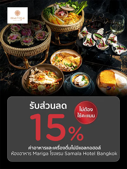 รับส่วนลด 15% สำหรับค่าอาหารและเครื่องดื่มไม่มีแอลกอฮอล์