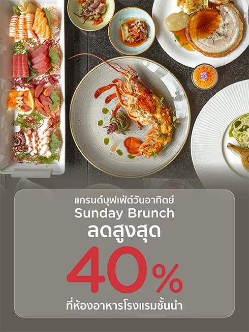 รับส่วนลด 20% สำหรับ Sunday Brunch ในวันหยุดเทศกาลและวันหยุดนักขัตฤกษ์ตามที่โรงแรมกำหนด