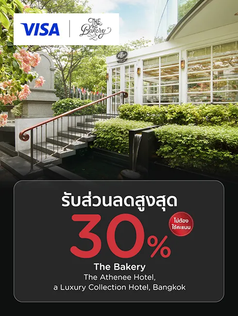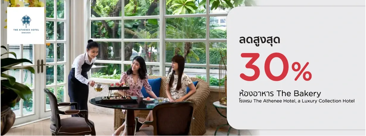• รับส่วนลด 30% ค่าอาหาร เครื่องดื่มไม่มีแอลกอฮอล์ เมนูเบเกอรี่ และ Afternoon Tea (สำหรับรับประทานที่ร้าน)