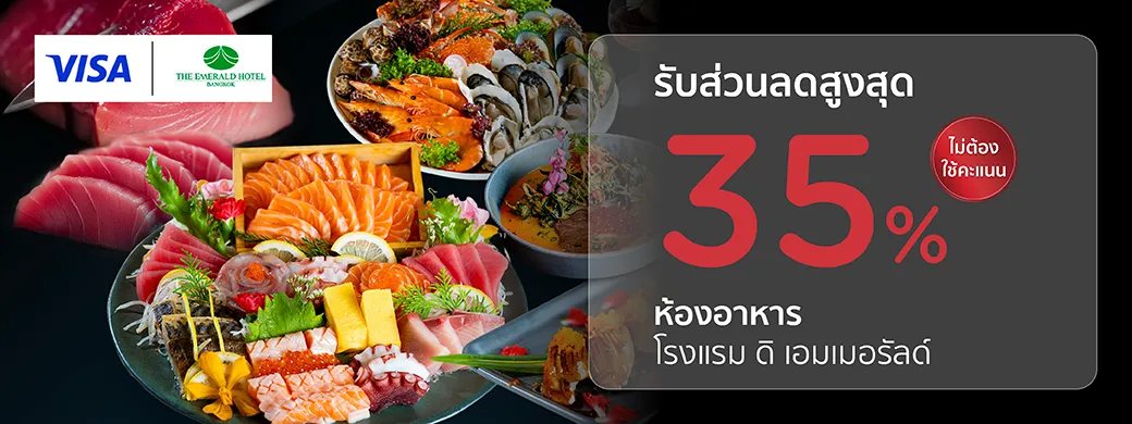 • รับส่วนลดลด 35% สำหรับบุฟเฟ่ต์นานาชาติมื้อค่ำ
