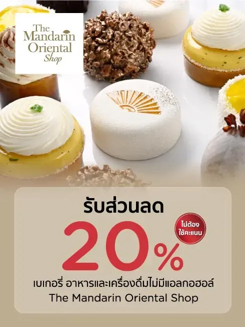 -รับส่วนลด 20% สำหรับเบเกอรี่ อาหาร และเครื่องดื่มไม่มีแอลกอฮอล์ (รับประทานที่ร้านและซื้อกลับบ้าน)
