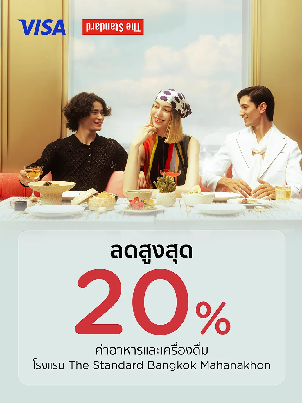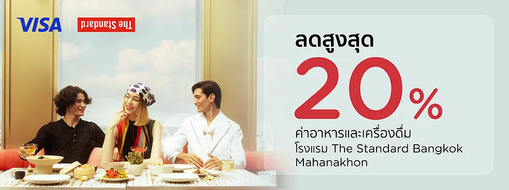 รับส่วนลดสูงสุด 20% ค่าอาหารและเครื่องดื่ม