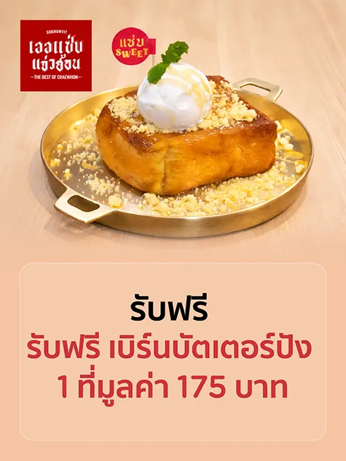 รับฟรี เบิร์นบัตเตอร์ปัง 1 ที่มูลค่า 175 บาท เมื่อทานครบ 1,500 บาท/เซลล์สลิป