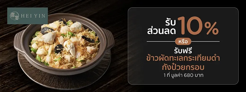 หรือ รับฟรีข้าวผัดทะเลกระเทียมดำกังป๋วยกรอบ 1 ที่ มูลค่า 680 บาท เมื่อทานครบ 6,000 บาท / เซลส์สลิป (เฉพาะอาหาร)