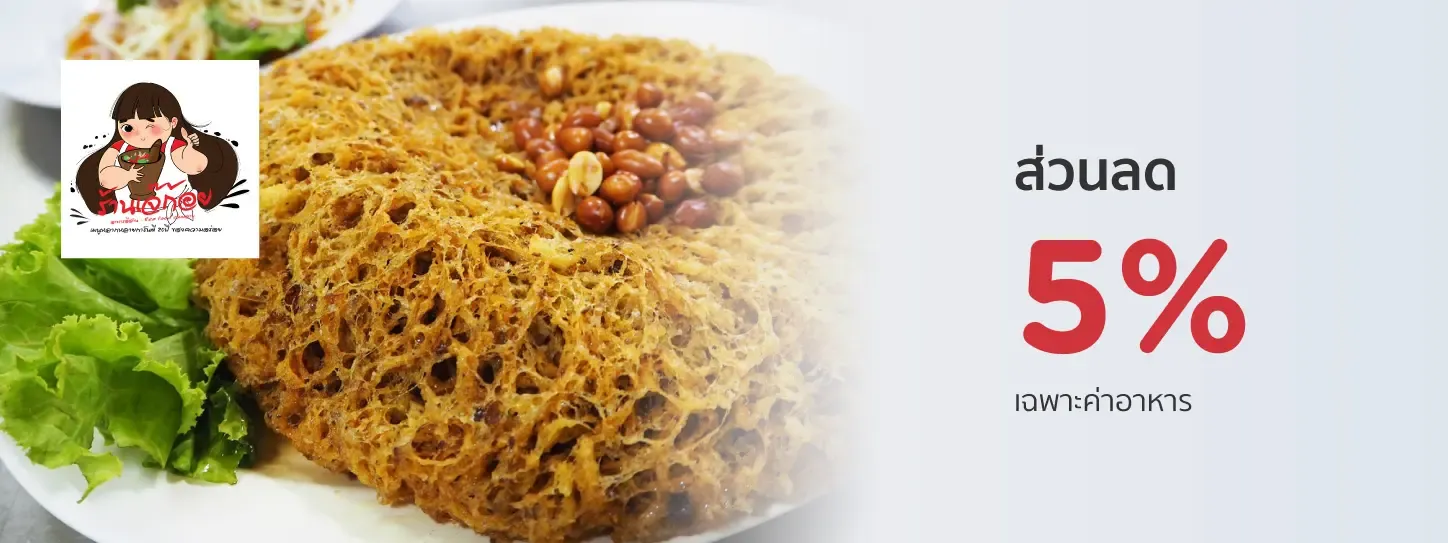 ส่วนลด 5%  เมื่อรับประทานครบ 500 บาท ขึ้นไป/เซลส์สลิป (คิดคำนวณเฉพาะยอดค่าอาหาร)