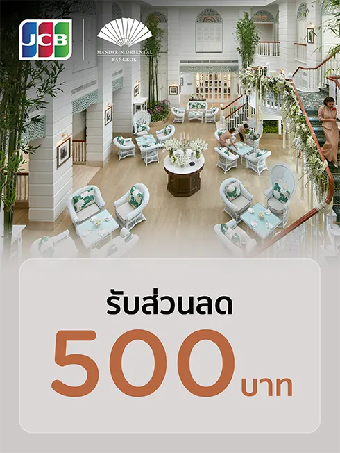สำหรับชุดน้ำชายามบ่าย (รวมเครื่องดื่มชาหรือกาแฟ สำหรับ 1 ท่าน) ที่จำหน่ายโดยโรงแรม แมนดาริน โอเรียนเต็ล กรุงเทพฯ เมื่อชำระผ่านบัตรเครดิต KTC JCB ULTIMATE