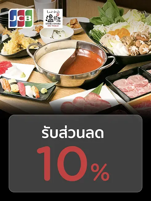 เมื่อมียอดใช้จ่ายตั้งแต่ 1,000 บาท ขึ้นไป / เซลล์สลิป (ก่อนหักส่วนลด) และชำระผ่านบัตรเครดิต KTC JCB ทุกประเภท ที่ร้าน On Yasai ทุกสาขา