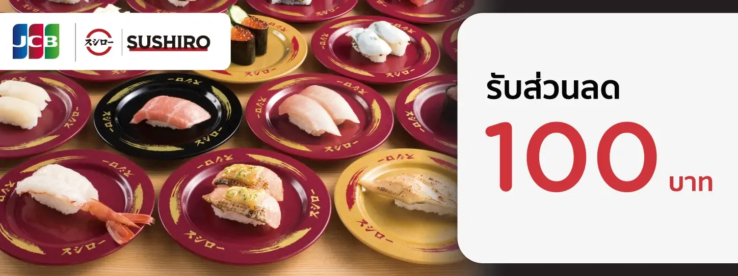 เมื่อทานครบ 1,200 บาทขึ้นไป/เซลล์สลิป รวมภาษีมูลค่าเพิ่มและค่าบริการ หลังหักส่วนลดโปรโมชั่นอื่นๆ และชำระเงินด้วยบัตรเครดิต KTC JCB ทุกประเภท ที่ Sushiro