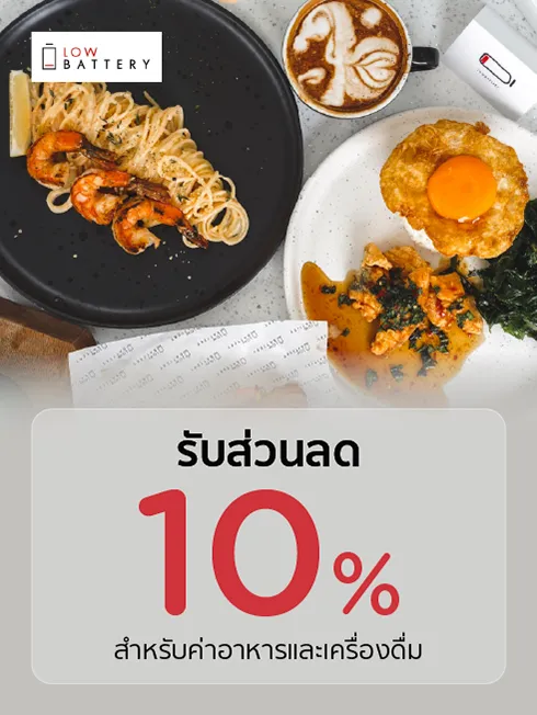 รับส่วนลด 10% สำหรับค่าอาหารและเครื่องดื่ม เมื่อทานครบ 800 บาท ขึ้นไป /เซลส์สลิป