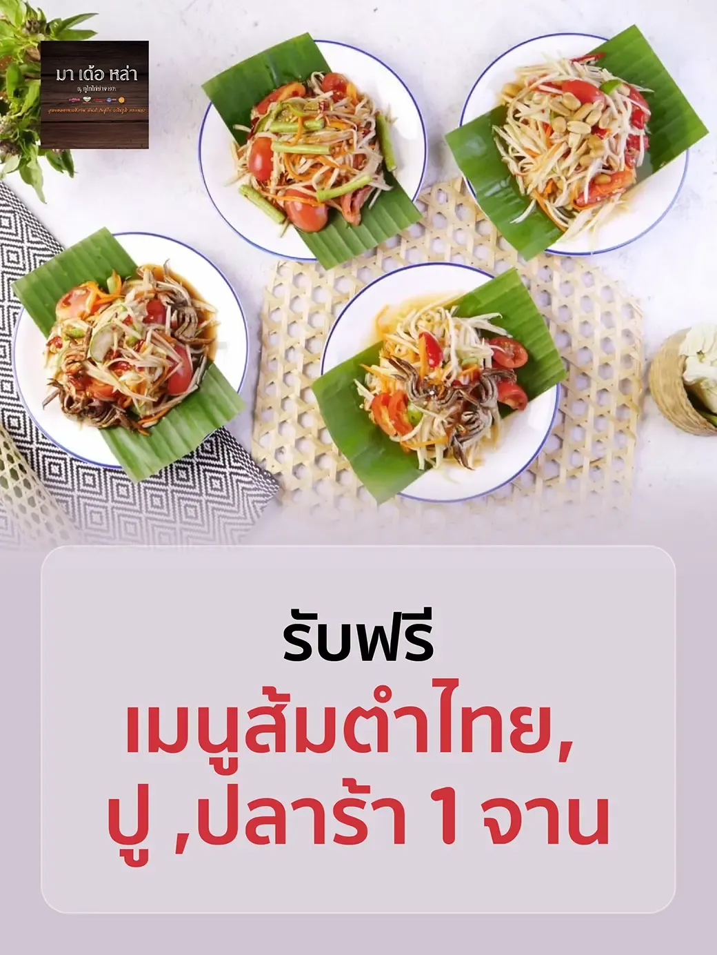 รับฟรีเมนูส้มตำไทย ,ปู ,ปลาร้า 1 จาน มูลค่า 85 บาท