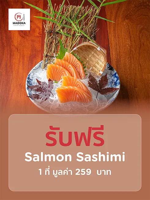 รับฟรี Salmon Sashimi 1 ที่ มูลค่า 259 บาท