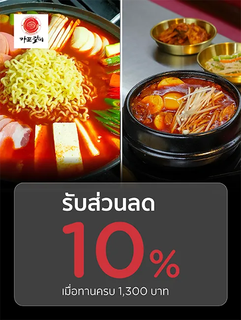 รับส่วนลด 10% เมื่อทานครบ 1,300 บาท / เซลส์สลิป หรือรับไข่ตุ๋น 1 ที่ มูลค่า 250 เมื่อทานครบ 1,000 บาท / เซลส์สลิป