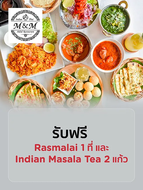 รับฟรี Rasmalai 1 ที่ และ Indian Masala Tea 2 แก้ว