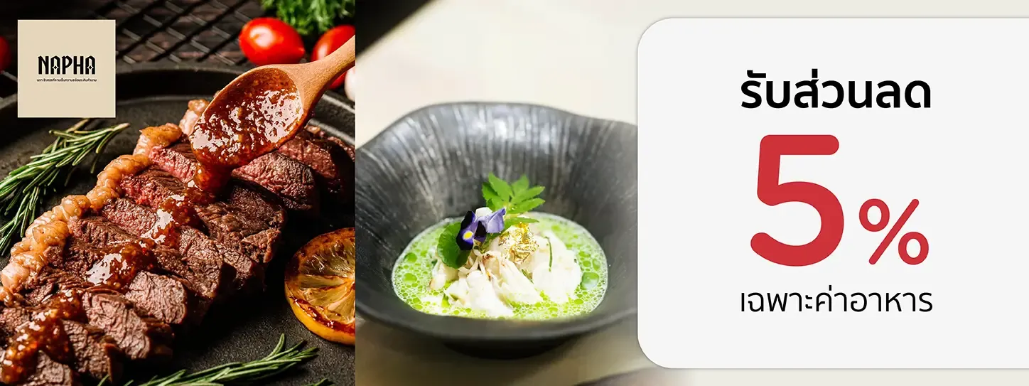 รับส่วนลด 5% เฉพาะค่าอาหาร เมื่อทานครบ 1,000 บาท / เซลส์สลิป